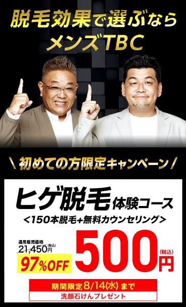 ※メンズTBC初めての方限定、お一人様1回限りの特別体験価格